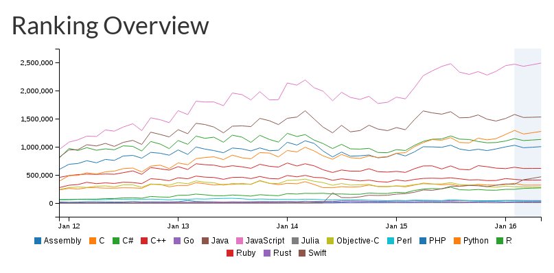 على موقع stackoverkill الدي يقوم برصد اهم اللغات ودلك عن طريق مبيان رسومي